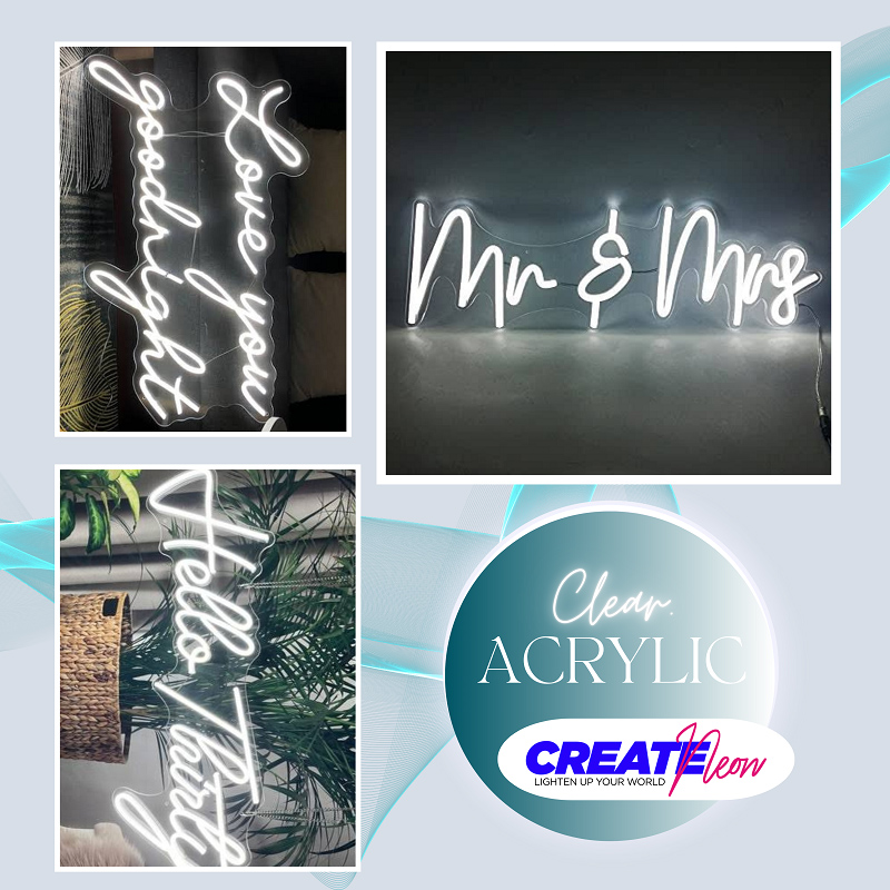 Create Neon signs are hand-made from unbreakable PVC flex that is lighter and stronger than glass tubes. The backings of our signs are made from sturdy acrylic.